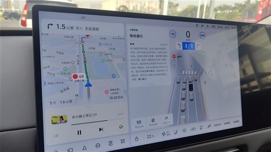 另外,智驾的SR渲染虽然从自车、外界车辆、非机动车、行人、标线、信号灯等基本元素都已经凑齐了,但是缺少周边环境的点云渲染。譬如在一些有施工的路口上,车辆监测到了护栏、临时水泥隔断等障碍并且实施了绕行,但是界面只渲染出了车道,没有这些额外障碍物的信息,这时候用户对系统的表现心里就会有些没底。这一点我觉得可以和小鹏学习一下。