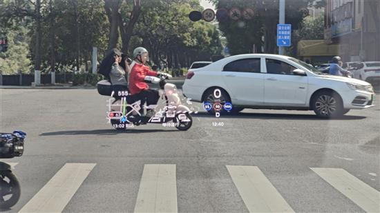 而HUD的表现,也没有想象中的那么好。虽然功能方面很丰富,能够显示路面的SR渲染、导航、车速和路面警示信息等,并且支持自定义,还可以在转向的时候显示侧边影像,但是信息量过大,而且在强光照的白天以及浅色的路面等背景下的对比度很一般,如果不把亮度调到最大的话经常会看不清。