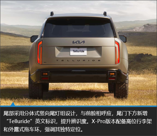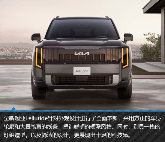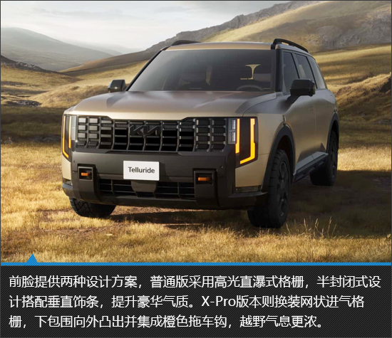 全新起亚Telluride采用更极致的“方盒子”造型以及更丰富的细节设计,强化了豪华感与越野属性,实现了从“简单家用”到“轻奢硬汉”的转型,定位直指北美中高端SUV市场。