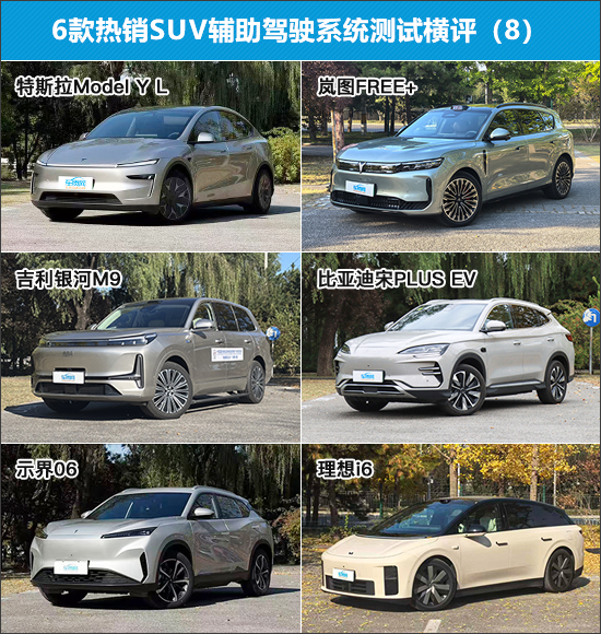 通过此次横评可以发现,岚图FREE+和比亚迪宋PLUS EV在多项测试中获得满分,总评分达到47分,排名并列第一;理想i6表现同样可圈可点,以46分的成绩紧随其后;吉利银河M9和特斯拉Model Y L虽然在部分测试环节存在丢分情况,不过两款车型的最终评分也都达到40分以上,成绩基本令人满意。至于示界06,由于在跟车状态测试中存在明显减分情况,导致其最终评分为36分,排名垫底。当然,参与横评的6款车型在辅助驾驶系统测试中或多或少都存在一些问题,希望厂家在后续的车型升级中持续优化改进,为车主带来更加安全便捷的辅助驾驶体验。