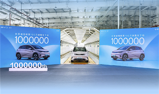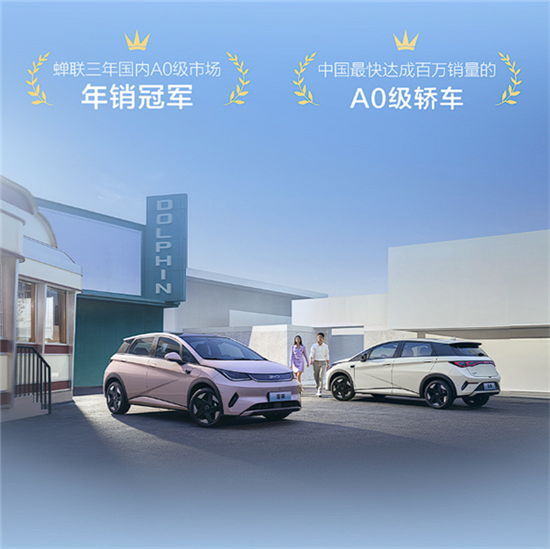 比亚迪汽车官宣,第100万辆海豚整车正式下线,蝉联三年国内A0级市场年度销冠。