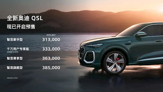 快科技12月21日消息,全新奥迪Q5L已于日前开启预售,新车共推出4款车型,预售价区间为31.3-38.5万元,与2025款车型34.98万元的起售价相比,全新车型价格下探3.68万元。