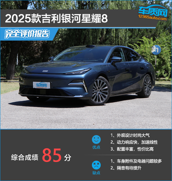 定位为“全球新一代豪华中高级电混轿车”的吉利银河星耀8,凭借越级配置和亲民价格,打破了以往高端配置对应高溢价的行业惯例,成功将中大型车的售价压低至12万元,性价比优势凸显。在此前对于2025款吉利银河星耀8的《百名车主评新车》调查中,该车在乘坐空间、加速性能方面表现出色,但也有部分消费者反映其车身附件及电器和销售问题相对较多。