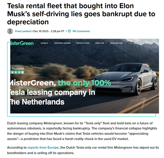 荷兰汽车租赁公司Mistergreen此前因组建纯特斯拉车队、豪赌自动驾驶网约车未来而闻名,但如今已濒临破产。