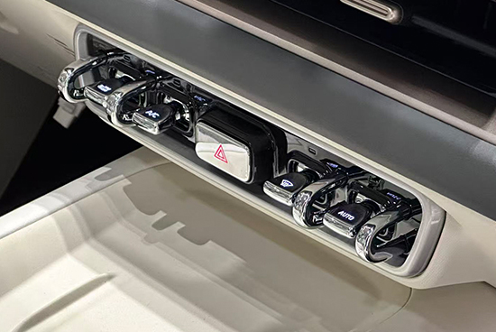内饰方面,新车采用与国画类似的“留白”艺术,通过简约克制的布局,为用户营造出舒展、通透的内在空间。其大量采用圆角设计元素,配合10.25英寸全液晶仪表和15.6英寸悬浮式中控屏的组合,提升了整体科技感。音响罩的设计灵感来自冰晶六边形,呈现出自然中的几何之美。空调出风口下方配备了物理拨杆,通过镀铬材质的应用,提升整体质感。