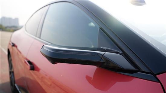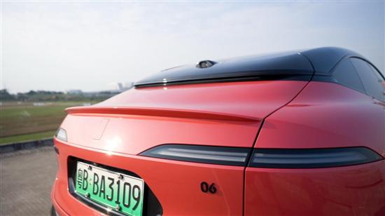 外观上还有一个小彩蛋可以跟大家分享一下:试驾车颜色为“丹红”,这个颜色很显年轻活力,并且车漆会随着光线变化——阳光猛烈的时候车漆看起来会相对淡一些;傍晚或者晚上看的话就会较为深邃。虽然阿维塔06提供6种颜色可选,但我个人觉得这款车既然是主打年轻用户的话,颜色选择仍然不够丰富,比如就没有不少年轻人喜爱的蓝色。
