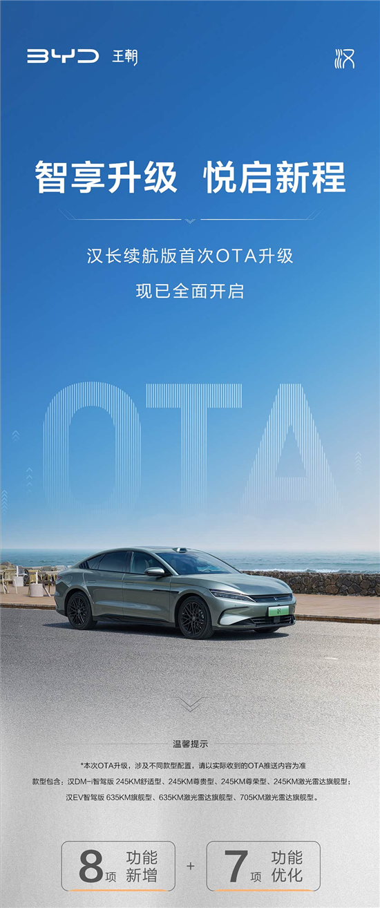 8项新增功能 比亚迪汉长续航版OTA升级