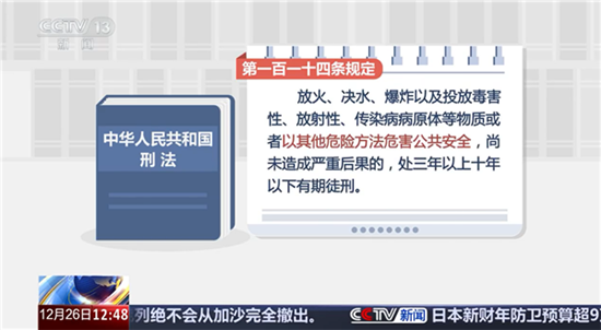 那么“以危险方法危害公共安全罪”又指的是什么?《刑法》第一百一十四条规定:放火、决水、爆炸以及投放毒害性、放射性、传染病病原体等物质或者以其他危险方法危害公共安全,尚未造成严重后果的,处三年以上十年以下有期徒刑。