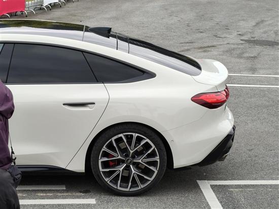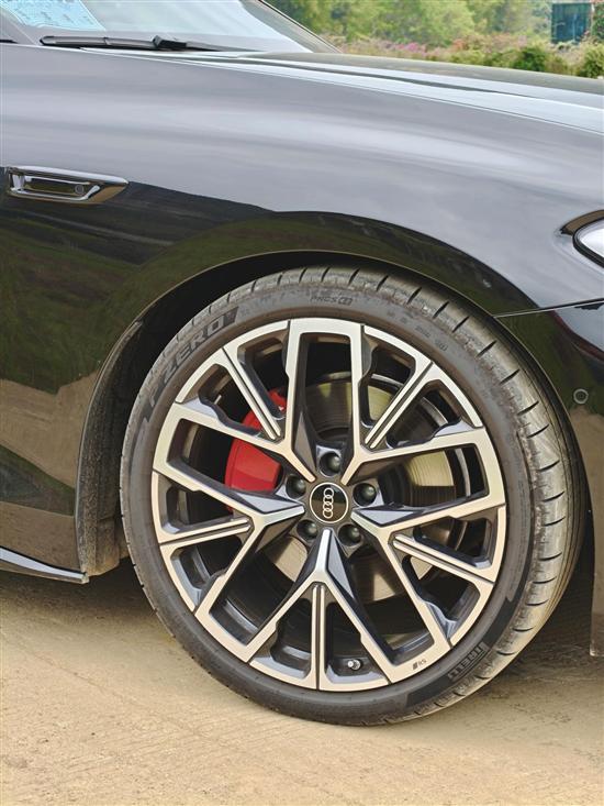 造型设计上,不得不说上汽奥迪A5L Sportback比我几个月前试驾过的一汽奥迪 A5L 要好看不少。即便轴距加长至2922mm,加长的部分也并未破坏原本完美的车身比例。这次在奥迪ADE 活动中,我有幸拿到了黑外红内的“终极配色”。虽然轮毂不是首发限量版和红运限定版那种 “黑武士” 风格,但这套20英寸带RS标识的轮毂,在红色涂装的大单活塞卡钳衬托下,依然展现出了Audi Sport车型那种闷骚的、“不鸣则已一鸣惊人” 的视觉张力。