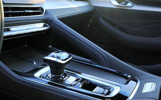 旅途之中,我们接触更多的其实是车辆的内饰,坐进星瑞东方曜的车内,便能看到不少中式美学设计元素。例如副驾仪表台的鹿跃星辰3D镭雕、座椅中间的莲花映月纹路,以及“月泉玉樽”水晶挡把。搭配海景,很符合“心旷神怡”之意。