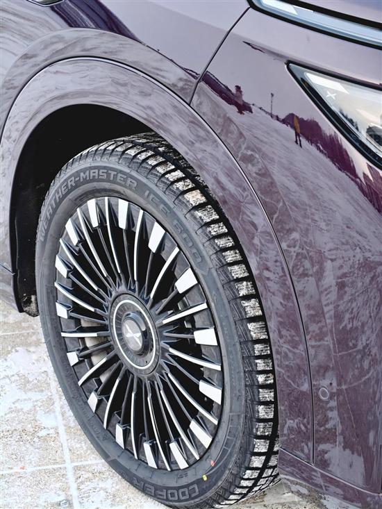 在零下30度的黑河试车场驾驶一台后驱的MPV,想想都挺刺激。小鹏官方也给所有试驾车换上了COOPER固铂ICE600冬季胎,轮胎规格同为235/50 R20。增程版在特殊场景辅助方面,相比纯电版车型还多出了一个专属的雪地模式,相当于针对电机轮端的限滑和 TCS电控做出了专属标定。