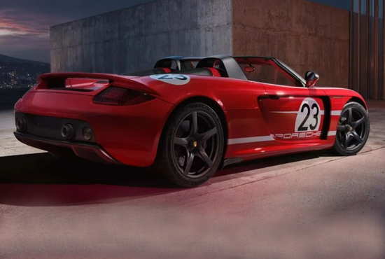 外观方面,新车依旧保留了卡雷拉GT车型经典的造型设计,圆润而不失运动感。车头为扁平化样式,标志性的椭圆形头灯和大尺寸通风口依旧没有缺席。为致敬曾在勒芒夺冠的保时捷917赛车,新车换为红白撞色设计,并在前舱盖和门板处印有字母23的logo。