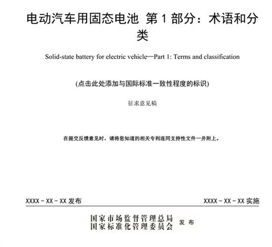 固态电池首个国家标准公开征求意见