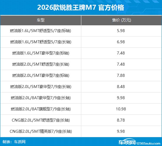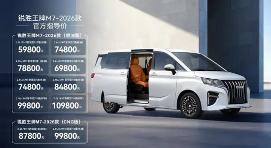 2026款锐胜王牌M7上市 售价5.98-10.98万元