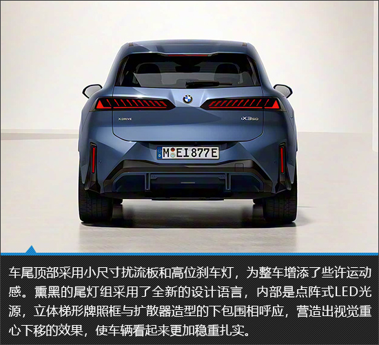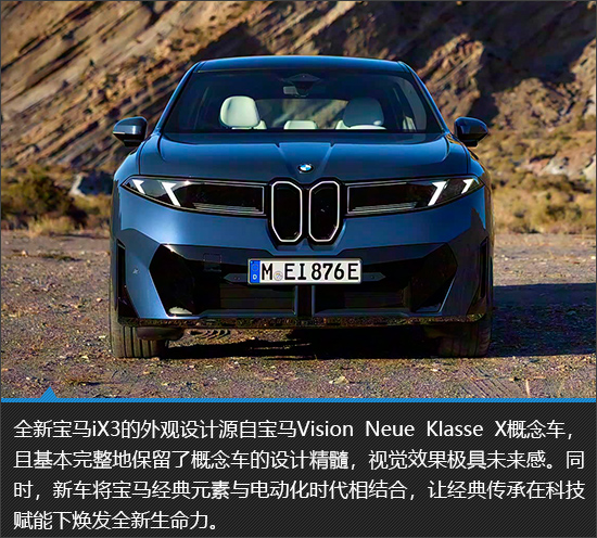 全新宝马iX3外观以宏观的“经典传承与电动创新”为核心基调,延续概念车未来感风格,将宝马品牌基因与电动化时代特质深度融合,整体造型兼具优雅质感与运动气息,个性化套装更丰富了车型的风格维度。