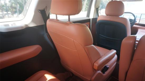 受限于车体宽度,二排的两张独立座椅会比同类型的传统中大型六座车窄一点,无论是侧翼、椅面还是手枕的宽度都稍微压缩了些许,从而“偷”出了宝贵的中央过道空间。好在座椅本身的舒适性还算不错,虽然和前排座椅一样都有腰部支撑不足的小问题,但整体承托能力并不差。坐垫高度对于我1米74的身高来说恰到好处,刚好能比较完整地垫住大腿。