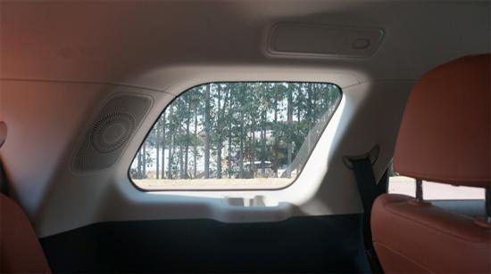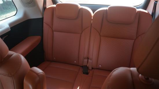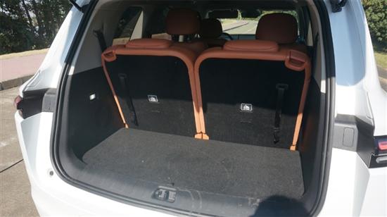 至于第三排空间,显然和正儿八经的中大型SUV还是有一点差距的,不过得益于“偷薄”的座椅和方正的尾部车顶造型,容纳两个成年人问题不大。以我的身高丈量,二排和三排都可以留出大约一拳左右的膝部空间。只是三排座椅的坐垫安装高度受限,没办法完全撑住大腿,稍有点“坐板凳”,好在靠背舒适性不差,中短途将就一下、或者给小孩子坐也没什么问题。此外在横向宽度上也能感觉到和其它六座SUV的差别。