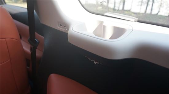 另外这台24款的智享型也是全系唯一一个没有二三排独立空调出风口的款型,预留给高配的出风口都用盖板堵上了。后舱仅有的一个出风口占据了Console上方的位置,不过26款就没有这样的问题了,这个位置已经被后排的空调调节面板所替代。Console部分搭配两个USB口满足后排充电需要。二排的杯架也在Console上以便腾出更多的后舱空间。