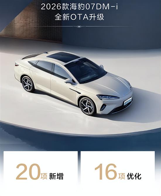 日前,比亚迪官方宣布2026款海豹07 DM-i正式推送首次OTA升级,此次升级涵盖20项功能新增与16项体验优化,多项实用功能提升用车便利性与安全性。