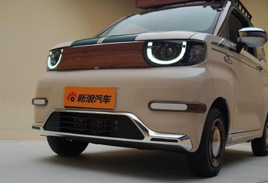 正面看上去,前格栅部分的两个大灯依然像个“大眼睛”一样呆萌可爱。全封闭式的前脸造型很符合复古车型简洁干练的形象。格栅中央使用木纹饰板进行修饰。保险杠上的两个灯条也被设计成了奶茶棕的颜色,加上下唇镀铬饰条的点缀,突出了精致感。