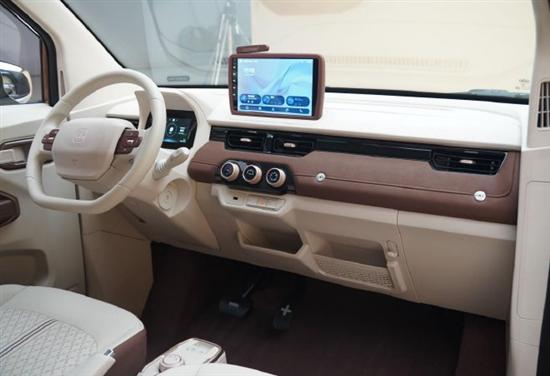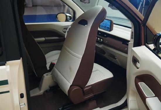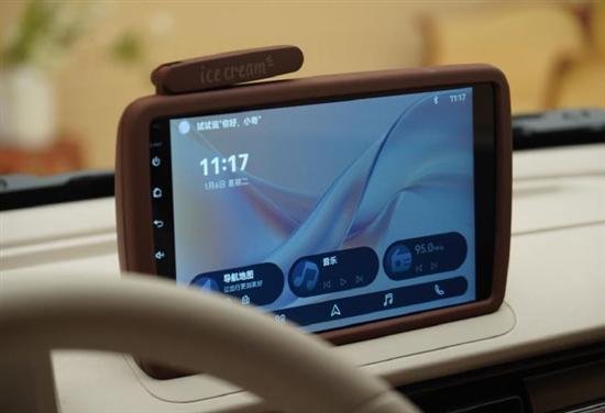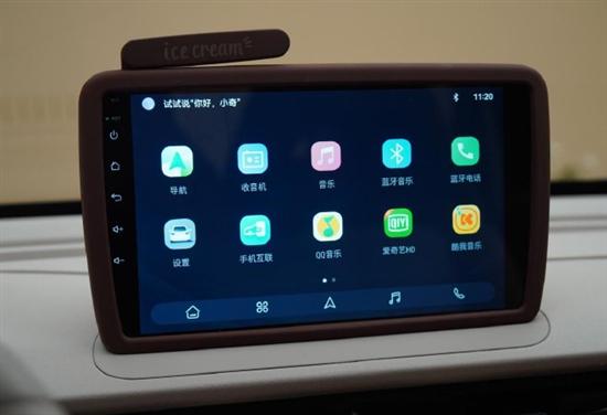 车内使用了液晶仪表加上9英寸中控屏的组合。车机内置的APP非常丰富,从娱乐到信息查询再到手机互联,没想到一款微型车能有如此功能强大的车机系统。方向盘多功能按键区域也使用了棕色配色与车内的整体调性非常搭。