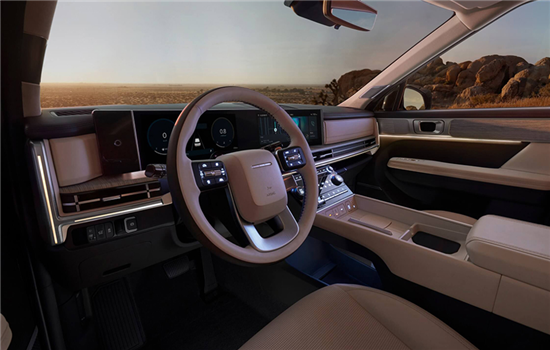 内饰采用双12.3英寸联屏+HUD抬头显示的配置组合,搭配2个手机无线充电板与扶手箱紫外线消毒功能,实用性出色。座椅提供5/6/7座灵活布局,均采用Nappa真皮包裹,前排支持加热、通风与侧部支撑,第二排配备电动调节、老板键及加热功能,第三排可完全放平扩展储物空间,满足多元出行需求。