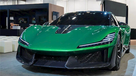车辆采用绿色涂装,超跑设计,整体造型极为战斗拉风,车头下压,前脸配备夸张的空气动力学套件,与法拉利F8接近。