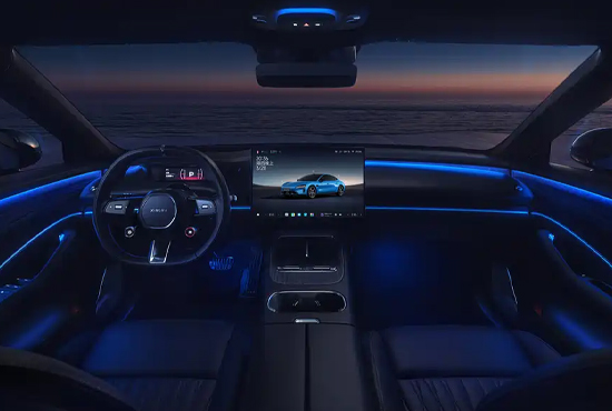 内饰方面,新款小米SU7新增了暗夜黑内饰配色。同时方向盘造型迎来升级,更接近于小米YU7的样式。在细节处,副仪表台的样式以及门板与座椅缝线也得到了优化。软包覆盖面积也大幅增加,配合环抱式设计的三层光效氛围灯,更显质感。