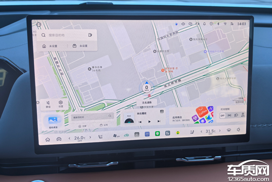 实测来看,就算是在白天光线比较充足的情况下,中控屏并未出现反光情况,并且亮度表现也不错。中控屏下方功能区域配备实体按键,可以便捷操控空调等功能。