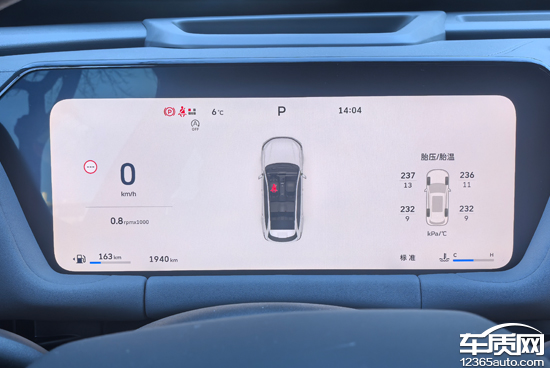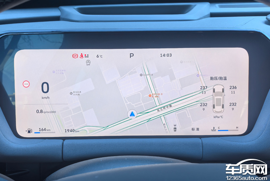 评测车搭载14.6英寸悬浮式中控屏,显示效果清晰细腻,界面设计美观。车机系统流畅度表现可圈可点,实测过程中并未出现明显的卡顿情况。同时,评测车还配备了12.3英寸全液晶仪表,可直观查看车辆行驶相关信息,并且支持两种主题切换。