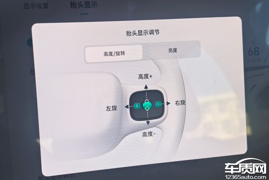 评测车具备HUD抬头数字显示功能,支持位置、亮度、显示信息调节,除车速、限速标识外,开启导航时的路线也会同步至画面当中,方便驾驶者查看。