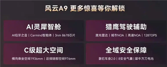 内饰延续极简风格,贯穿式空调出风口、大尺寸悬浮屏与双色方向盘质感拉满,中央通道区保留物理按键并配备无线充电面板。智能化是核心亮点,AI灵犀智舱搭载8678芯片,23扬声器1080W伯牙之音音响支持AI无麦K歌与智慧调音;猎鹰驾驶辅助系统拥有128TOPS算力,覆盖城市NOA与高速NOA功能。有关新车的更多消息,车质网将持续关注并报道。