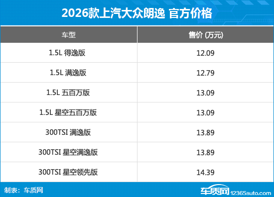 2026款上汽大众朗逸正式上市 售价12.09万起
