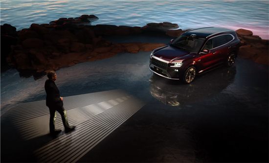 此外,前脸还提供分体式灯组,并配备投影大灯,可在地面投射光幕,提供情绪价值,这也是豪华车常用的配置之一。