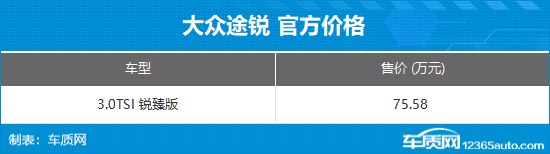 大众途锐3.0TSI锐臻版上市 售价75.58万元