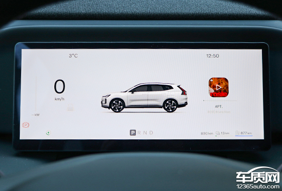 评测车搭载15.4英寸中控屏以及12.3英寸全液晶仪表,均采用悬浮式设计。全液晶仪表内置四种视图模式,内容清晰易读,屏幕还带有随环境光线自动调节功能。虽然车机芯片的型号并未公布,但是操作流畅性并无任何槽点,实测过程中没有出现卡顿情况。