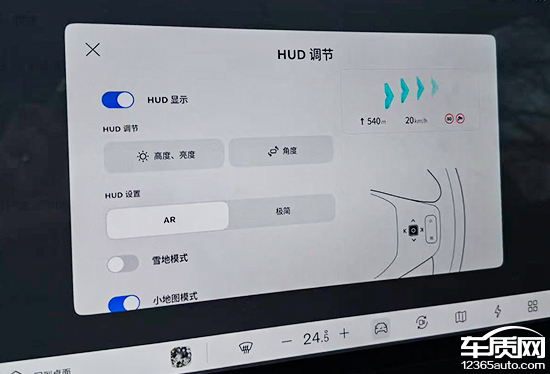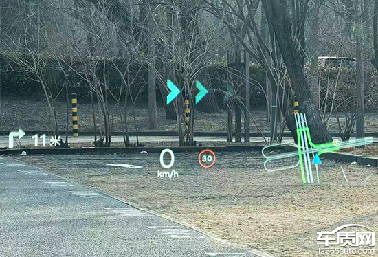 评测车搭载92英寸AR-HUD增强现实抬头显示系统,能够为用户提供沉浸式驾驶体验。关键信息清晰投射于前挡风玻璃处,视线无需过多偏离路面就能全部看到,即使穿行雪地、隧道或暗夜,内容显示始终清晰锐利。