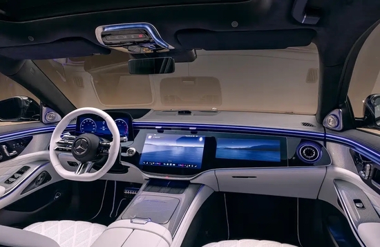 内饰部分,新车采用环抱式悬浮设计的MBUX超级屏,由14.4英寸中控屏与12.3英寸副驾屏组成,副驾屏支持隐私模式。后排配备两块13.1英寸显示屏及触控遥控器,进一步强化乘坐体验。