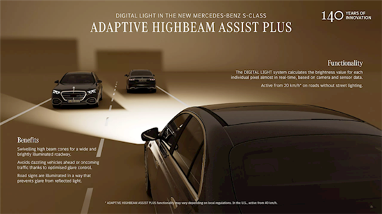 新款奔驰S级车灯搭载5万颗LED:照射605米