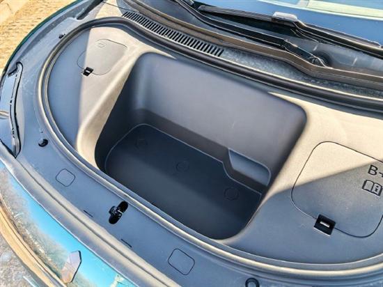 除了配色和大灯组有所变化外,纯电版的智界R7也是配备了电动前备箱功能,并且开启方式也是非常的顺手,只要连续敲击两下前车标的周围,前备箱就能开启了。整个前备箱的空间也是足够大,可以放下一个20英寸的登机箱。等我们想要关闭时,前备箱还带有电吸功能,实用性得到了保障。