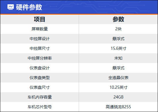 评测车搭载15.6英寸中控屏以及10.25英寸全液晶仪表,两者均采用悬浮式设计。全液晶仪表布局简单合理,显示内容清晰易读。高通骁龙8255芯片的算力达到24TOPS,实测车机系统操作流畅度表现优异,在多任务切换以及长时间运行后,仍未出现死机或卡顿情况。