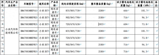 日前,工信部发布的《减免车辆购置税的新能源汽车车型目录(第二十七批)》披露了新一代小米SU7的动力电池及续航信息。新车将提供73kWh、96.3kWh和101.7kWh三种不同规格的电池包可选,CLTC最高续航可达902km。