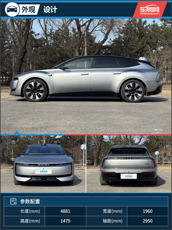外观方面,评测车采用前瞻性美学风格,车头为封闭样式,头灯与环形装饰无缝衔接,一体性极强。奥迪首创的星钻光幕不仅辨识度极高,还提供了3款迎宾灯语,提供满满的情绪价值。AUDI英文字母取代经典的四环标识,预示着品牌电动化新时代的开启。