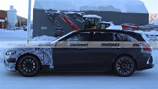 从此次曝光的谍照来看,测试车的前格栅配备了AMG经典的直瀑式设计,前包围延续大尺寸导风槽和中间进气口设计,不过前灯组并没有融入全新三叉星辉元素。车身侧面依旧是经典的旅行车造型,前后翼子板采用宽体设计。