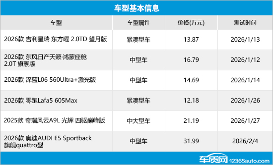 本期选取的6款车型包括1款中大型车、3款中型车和2款紧凑型车,涵盖自主、合资和豪华品牌,燃油车和新能源车都有涉及。