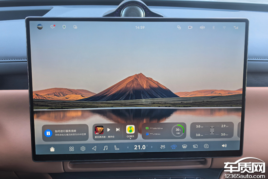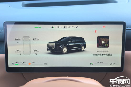 评测车搭载16.1英寸悬浮式中控屏,分辨率达到3K,显示效果清晰细腻,界面设计美观。车机系统流畅度表现可圈可点,实测过程中并未出现明显的卡顿情况。10.25英寸全液晶仪表支持两种主题切换,可直观查看车辆行驶相关信息。