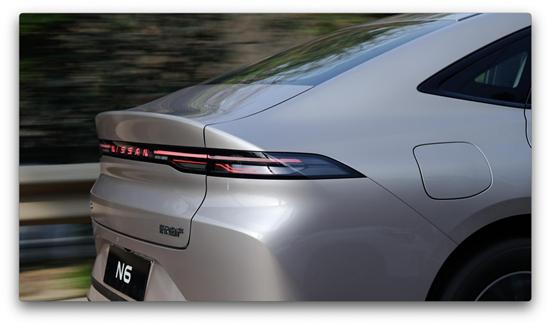 国内新势力品牌设计的三板斧:贯穿式前后灯组、封闭或者半封闭式前脸、可发光前后车标——东风日产N6的外观无疑就是往这个方向靠拢的。