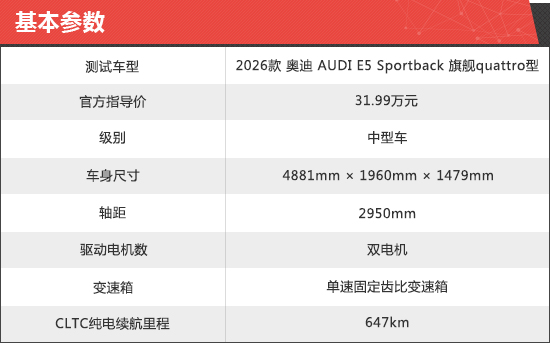 2026款奥迪E5 Sportback新车商品性评价