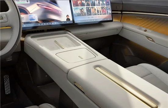 内饰部分,新车采用全液晶仪表屏和双14.96英寸双联屏,座椅采用Nappa真皮,副驾座椅提供14向电动调节和腿托,同时还提供10点气动按摩和柔光化妆镜等。第二排提供折叠桌板、主/副驾座椅靠背磁吸接口、座椅加热和隐私玻璃等。