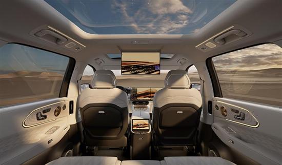 后排配置方面,极氪8X搭载后排全景天窗与车顶屏幕,座椅支持电动调节与电动腿托功能。其他舒适性配置还包括后排电动遮阳帘、上翻式电动脚踏、宽度291mm的后排中央扶手等,后备厢最大容积可达2200L。